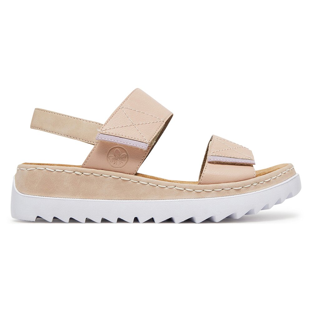 Sandály BÉŽOVÁ Přírodní kůže pokrytá syntetickým materiálem RIEKER V4475-31 Beżowy Rieker Dámské/Obuv/Sandály