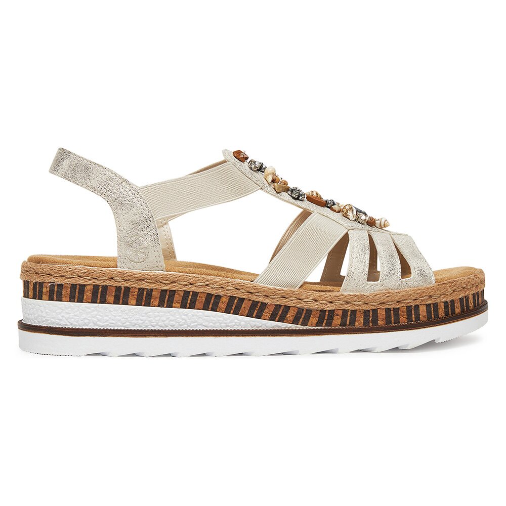 Sandály BÉŽOVÁ Látkový materiál,Syntetický materiál RIEKER V7949-90 Beżowy Rieker Dámské/Obuv/Sandály