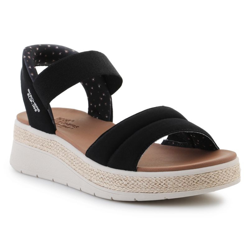 Sandály Skechers Slip-Ins: Bobs Sun Ray W Features: Skechers Slip-Ins: BOBS Sun Ray 114413-TPE Taupe Lehké a funkční sandály jako stvořené pro letní dny. Díky technologii Slip-Ins® si je můžete nazout bez použití rukou - stačí do nich jen vsunout nohu. Pružný textilní svršek se dokonale přizpůsobí vašemu chodidlu, zatímco polstrovaná stélka Memory Foam® zajistí maximální pohodlí po celý den. Pružná podrážka zvyšuje trakci a podporuje přirozený pohyb. Černá barva je stylovou volbou, která se hodí ke každému letnímu vzhledu - od města až po pláž.