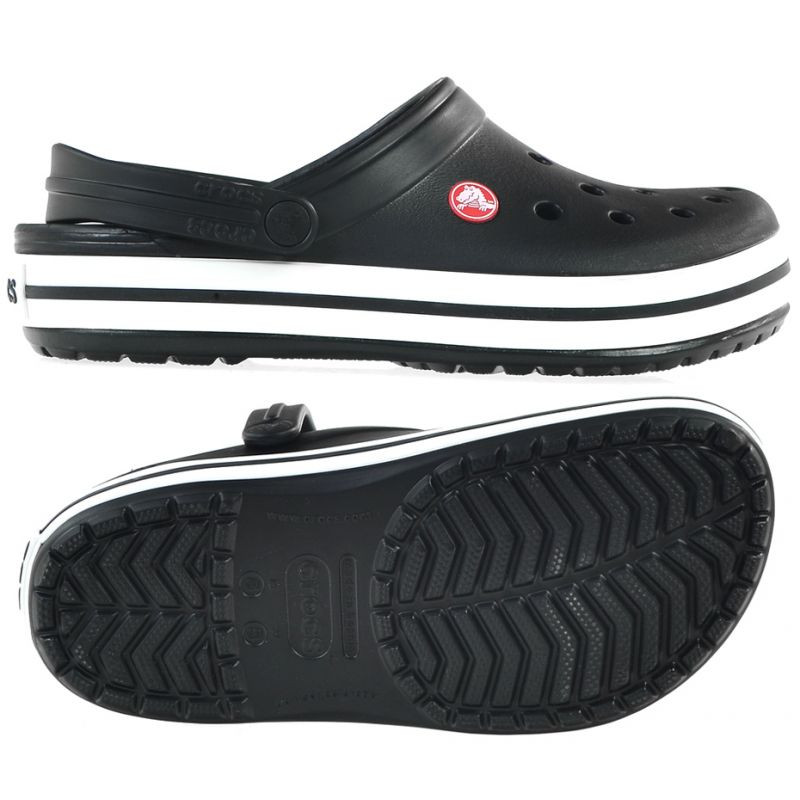 CROCS CROCBAND sandály, žabky černé Vlastnosti: Černé dřeváky Crocs jsou univerzální volbou pro každého, kdo ocení pohodlí. Jsou ideální pro teplejší dny při práci na zahradě i pro odpočinek s blízkými u jezera nebo při grilování na pozemku. Výrobek je již léta oceňován pro své pohodlí, lehkost, nepromokavost a snadné čištění. Svršek je vyroben z materiálu Croslite, díky kterému se bota přizpůsobí tvaru chodidla. Vnitřek boty je rovněž vyplněn materiálem Croslite s nestejnoměrným povrchem, který eliminuje vznik příznivého prostředí pro bakterie a plísně, absorbuje pot a umožňuje udržovat hygienu.