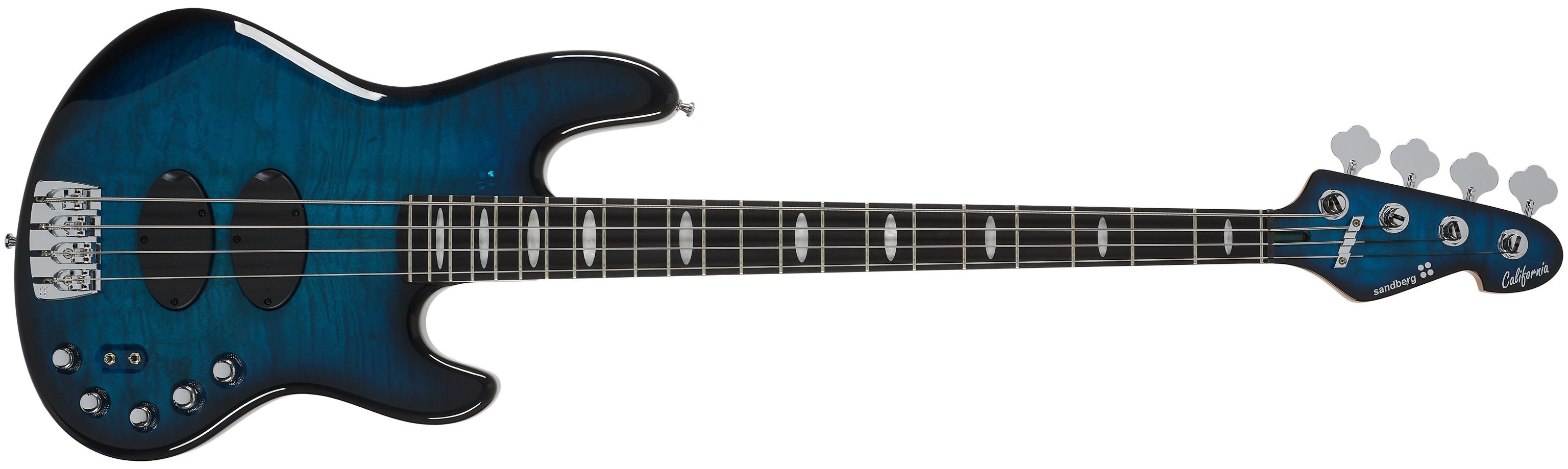 Elektrická baskytara Čtyřstrunná elektrická baskytara California Supreme 35th Anniversary připomíná 35 let od založení německé značky Sandberg. Jedná se o exkluzivní nástroj vyrobený v Německu ze zcela prvotřídních materiálů týmem velmi zkušených kytarářů. Olšové tělo baskytary zdobí top z obláčkového javoru. Výraznou kresbu javoru zvýrazňuje lesklý lak a barevný finiš Blueburst. Ke krku z kanadského javoru je přilepen ebenový hmatník osazený dvaadvaceti pr