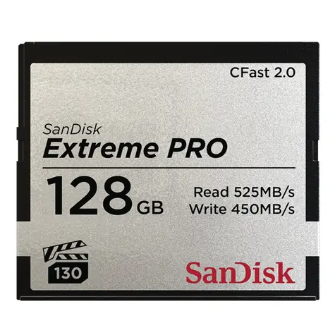 SanDisk Extreme Pro CFast 2.0 128GB / čtení: až 525 MBs / zápis: až 450 MBs