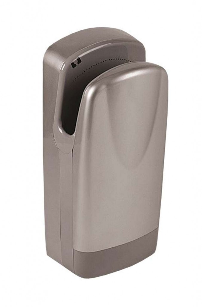 Automatický štěrbinový osoušeč rukou reaguje na přítomnost rukou ve štěrbině automatickým spuštěním ofuku čas sepnutí možno nastavit v rozsahu 3- 33 s, standardně 20 s přebytečná voda odtéká do nádržky ve spodní části, nedochází k znečištění podlahy pod osoušečem šedý plastový kryt Technická specifikace rozměry: 650 x 300 x 230 mm napájecí napětí: 230 V/50 Hz příkon: 2000 W rychlost vzduchu: 300 km/h stupeň ochrany: třída II, IP 31 hmotnost: 9,5 kg hlučnost: < 90 dB