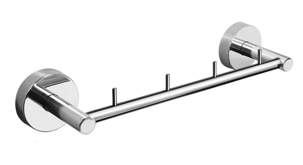 Čtyřháček materiál nerez rozměry 340 x 58 x 55 mm kulaté krycí rozety 4 háčky nástěnná montáž instalace lepením