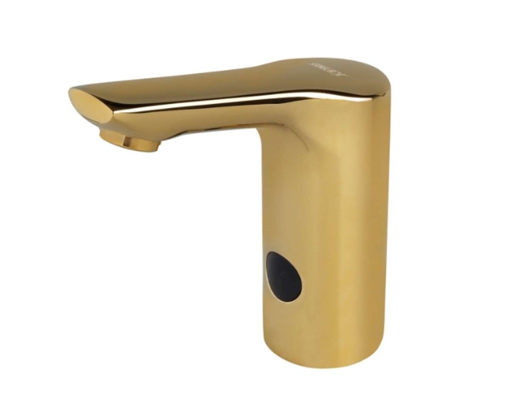 Stojánkový plně elektronický umyvadlový ventil barva zlatá výška ventilu 152 mm délka výtoku 97 mm komfortní zóna 128 mm pro jeden typ vody - nastavení teploty ručně rohovými ventily bezdotykové ovládání povrchová úprava PVD s úsporným naklápěcím perlátorem bateriové napájení hygienický proplach vnější závit G 1/2" bez odtokové soupravy možnost přepnutí do režimu Start/Stop možnost ovládání přes Bluetooth aplikaci nebo dálkový ovladač bezpečnostní funkce vypnutí vody po 5 minutách hlídání stavu baterie Technické údaje doporučený tlak 1 - 6 bar nastavitelné vypnutí vody po uplynutí 0,25 - 7,75 s napájecí napětí 6 V příkon 3 W dosah standardně 0,13 - 0,19 m dosah v režimu Start/Stop 0,05 - 0,15 m průtok 6 l/min životnost baterií cca 2 roky (při 100 sepnutích denně) Obsah balení ventil s elektronikou 1x elektromagnetický ventil sestava Y-dílu a hadic s integrovanou zpětnou klapkou propojovací hadice 2x rohový ventil s filtrem a zpětnou klapkou 4x AA alkalické baterie 1,5 V, 2700 mAh s pouzdrem