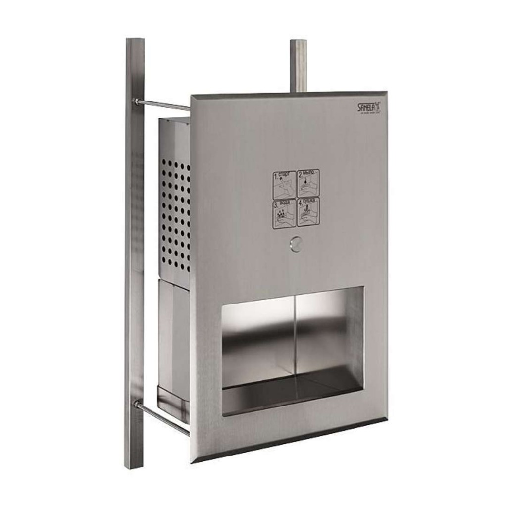 Nerezové piezo multifunkční umyvadlo hygienický proplach antivandalové provedení použití pro věznice nerezové multifunkční umyvadlo se zabudovaným piezo systémem pro ovládání dávkovače mýdla, výtoku vody a osoušeče rukou montáž přes závitové tyče z druhé strany stěny reaguje na mírné stlačení piezo tlačítka doplnění mýdla se provádí ze servisní místnosti nastavení parametrů pomocí dálkového ovladače SLD 07 materiál: nerezová ocel AISI 304 povrch matný Technická specifikace napájecí napětí: 230 V AC/50 Hz doporučený pracovní tlak: 0,1-0,6 МPa vstup vody: vnější závit G 1/2 hlučnost: < 65 dB Rozsah dodávky nerezové multifunkční umyvadlo automatický dávkovač mýdla, výtok vody a osoušeče rukou sifon, montážní sada, flexo přívodní kabel se zástrčkou dálkové ovládání není součástí balení