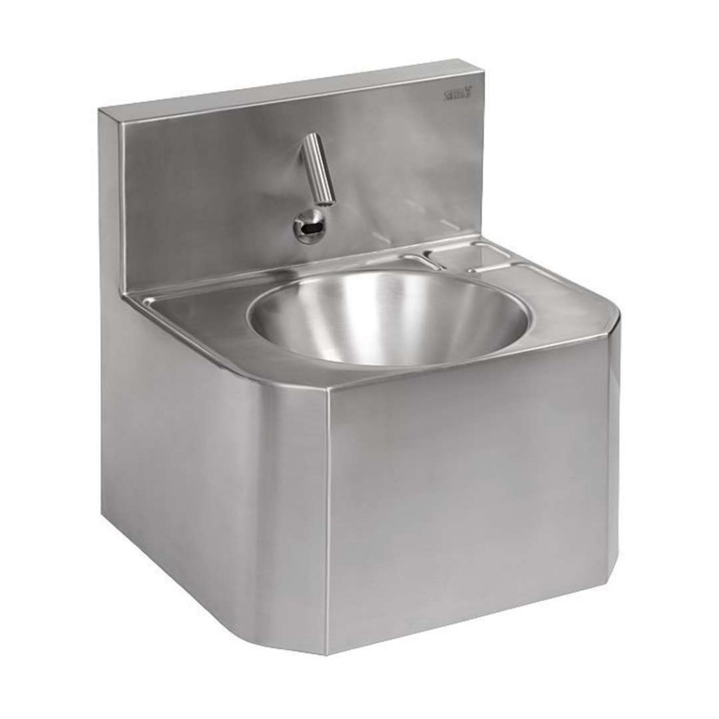 Nerezové automatické umyvadlo s elektronikou ALS úsporný perlátor, průtok 6 l/min hygienický proplach antivandalové provedení použití pro věznice závěsné nerezové umyvadlo s elektronikou a speciálním ramínkem anti-suicide proti sebepoškozování je určené pro přívod studené a teplé vody, nastavení teploty ručně rohovými ventily montáž přes servisní otvor reaguje na přítomnost rukou ve snímané zóně okamžitým spuštěním vody k vypnutí vody dojde po vyjmutí rukou po uplynutí nastavené doby (možno nastavit v rozsahu 0,25 - 7,75 s) bezpečnostní funkce vypnutí vody po 5 minutách indikátor stavu baterie možnost přepnutí do režimu START/STOP nastavení parametrů pomocí dálkového ovladače SLD 03 materiál: ocel AISI 304 povrch matný Technické údaje napájecí napětí: 6 V příkon: 3 W dosah: 0,23-0,31 m doporučený pracovní tlak 0,1-0,6 МPa vstup vody: vnější závit G 1/2 Obsah dodávky nerezové umyvadlo s elektronikou a výtokovým ramínkem elektromagnetický ventil, Y-díl, propojovací hadice rohový ventil s filtrem a zpětnou klapkou 2 ks sifon, úchytová sada 4 ks AA alkalických baterií 1,5 V, 2700 mAh (životnost cca 2 roky) dálkové ovládání a napájecí zdroj není součástí dodávky