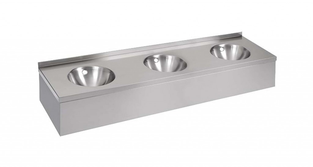 SANELA - Nerezová umyvadla Trojumyvadlo s opláštěním 1800x500 mm, bez otvoru pro baterii, matná nerez SLUN 20P