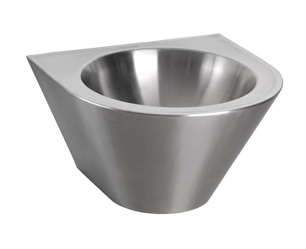 Nerezové kónické závěsné umyvadlo bez přepadu, průměr 320 mm Vlastnosti rozměr 420x410 mm výška 250 mm antivandalové provedení použití pro věznice, veřejný sektor montáž přes servisní otvor a speciální šrouby bez otvoru pro baterii vyztuženo polyuretanem (snížená hlučnost, zvýšená pevnost) materiál AISI - 304 povrch matný nerez Součástí balení nerezové umyvadlo sifon úchytová sada