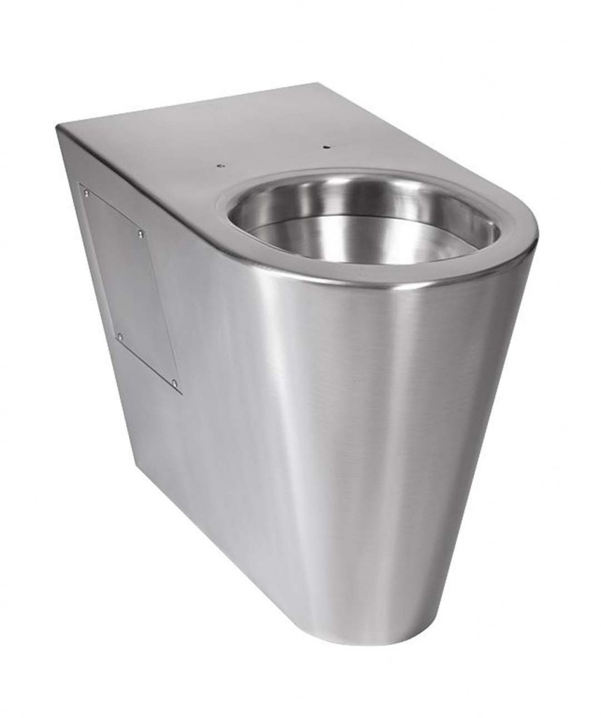 Bezbariérový stojící klozet SLWN 13 pro tělesně postižené antivandalové provedení použití pro věznice kónického tvaru k uchycení na stěnu a podlahu zaslepené otvory pro WC sedátko odpad do stěny nebo do podlahy montáž přes servisní otvor materiál: CrNi 18/10 (ocel AISI 304), tloušťka 1,5 mm vyztužené polyuretanem (snížená hlučnost, zvýšená pevnost) povrch matný nerez WC sedátko není součástí balení, je nutné objednat zvlášť.