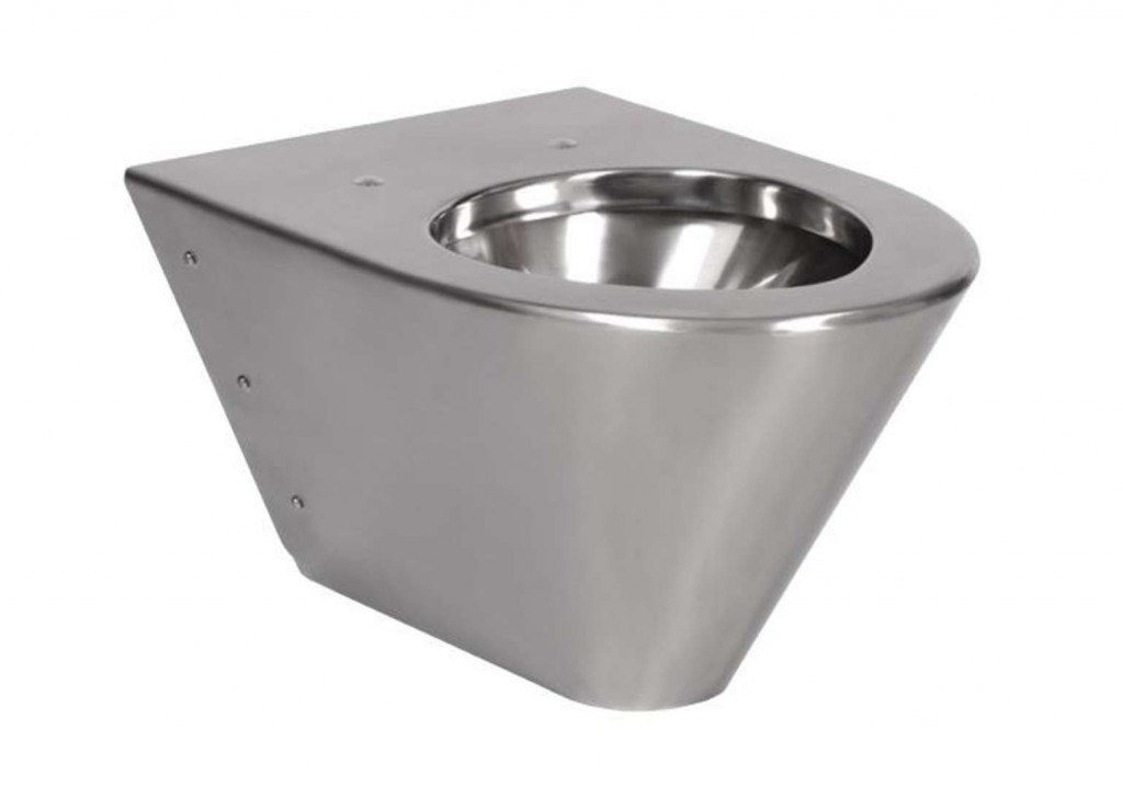 Nerezové WC s montážní deskou, bez sedátka antivandalové provedení závěsné WC kónického tvaru zaslepené otvory pro WC sedátko montáž přes speciální šrouby materiál CrNi 18/10 (AISI - 304), tloušťka 1,5 mm povrch matný