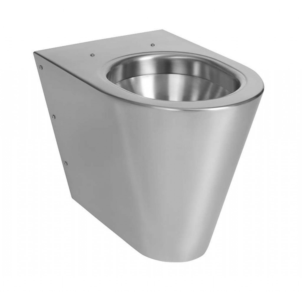 Nerezové WC na podlaze stojící k uchycení na stěnu antivandalové provedení na podlaze stojící WC k uchycení na stěnu a podlahu zaslepené otvory pro sedátko vyztužené polyuretanem (snížená hlučnost, zvýšená pevnost) montáž pomocí montážní desky materiál AISI - 304 povrch: matný nerez WC sedátko není součástí balení, je třeba objednat zvlášť