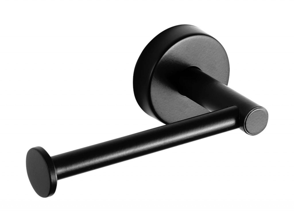 Nástěnný držák na toaletní papír, bez krytu materiál: nerezová ocel AISI – 304 povrch: černá mat rozměry: 142 x 79 x 55 mm instalace pomocí oboustranné lepící pásky 3M VHB pro dokonalou fixaci, nebo vrtáním na zeď sada pro uchycení, lepící páska 3M