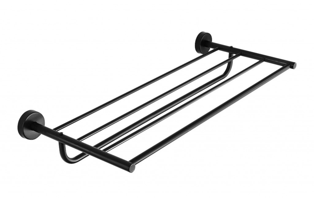 Nerezová polička s hrazdou pro zavěšení ručníků materiál: nerezová ocel povrch: černá mat rozměry: 500 x 250 x 100 mm instalace: vrtáním na zeď sada pro uchycení