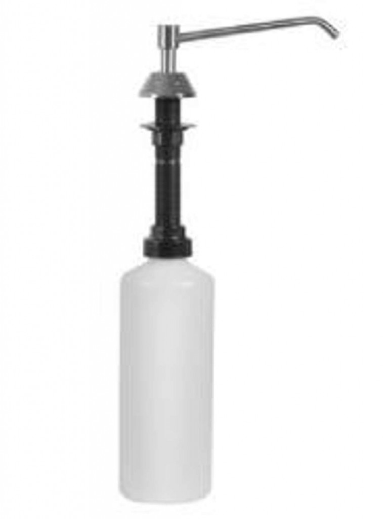 Zápustný dávkovač tekutého mýdla hlavice a píst z nerezu, dlouhá chromovaná výtoková hubice objem 1 l montáž do desky max. tl. 90 mm potřebný pr. otvor v desce 25 mm povrch lesklý