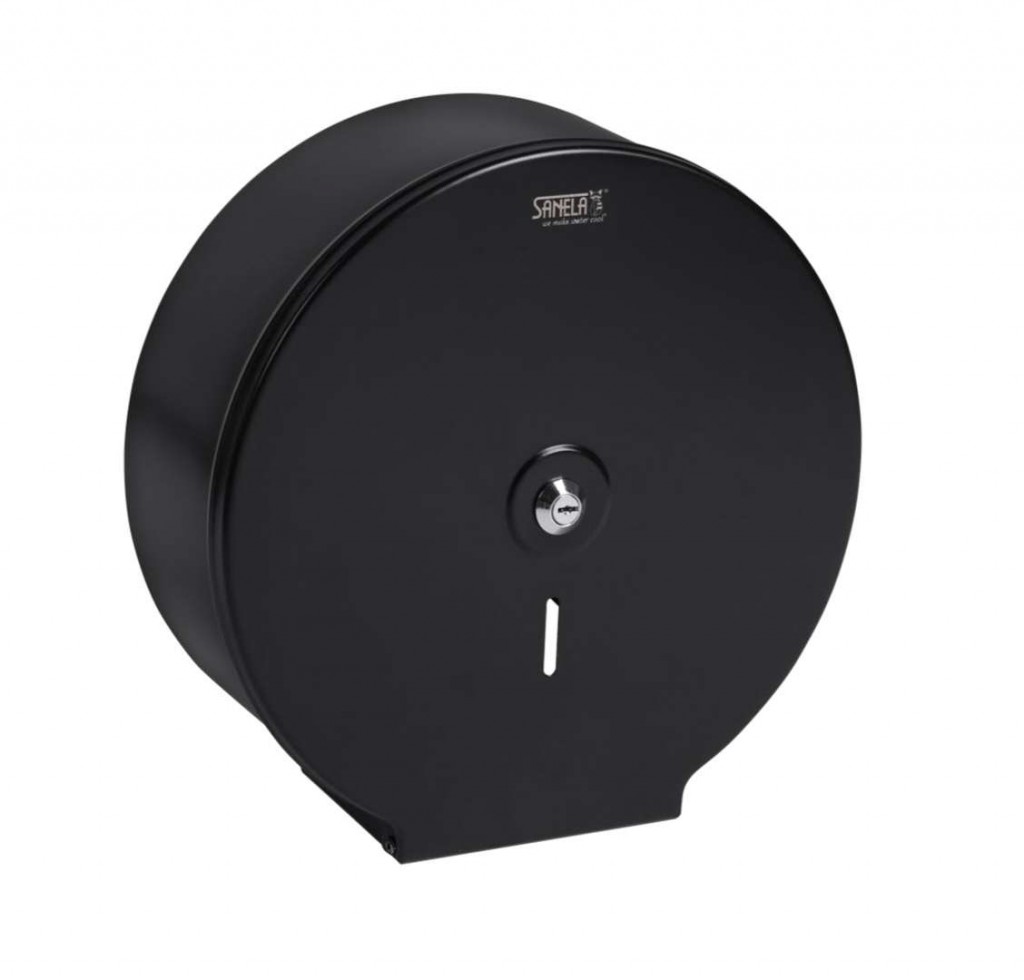 Nerezový zásobník velkých rolí toaletního papíru uzamykatelný maximální rozměr náplně Ø 290 x 100 mm min. Ø dutinky 55 mm povrch černý - Komaxit