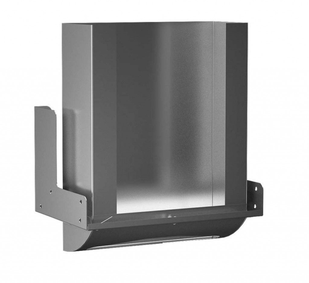 Zásobník skládaných papírových ručníků za zrcadlo materiál nerez matný povrch maximální rozměr náplně 260 x 100 mm kapacita zásobníku cca 600/800 papírových utěrek rozměry 352 x 200 x 300 mm montáž na stěnu za zrcadlo jednoduché plnění, montážní držák se zásobníkem