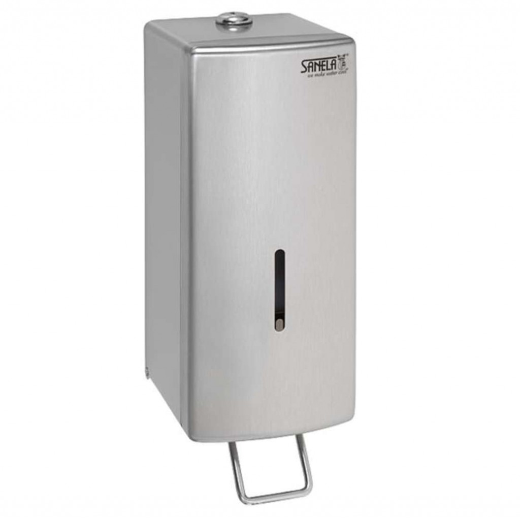 Nástěnný dávkovač tekutého mýdla povrch matný materiál nerezová ocel vnitřní nádobka z plastu objem 1 l uzamykatelný rozměry 290 x 100 x 120 mm (včetně páčky) viskozita mýdla 2,8-5 Pas upozornění: nepoužívat pro dezinfekční gely, dezinfekce a podobné látky Výrobce nenese zodpovědnost za škody vzniklé aplikací jiného, než doporučeného typu mycího prostředku (mýdla).