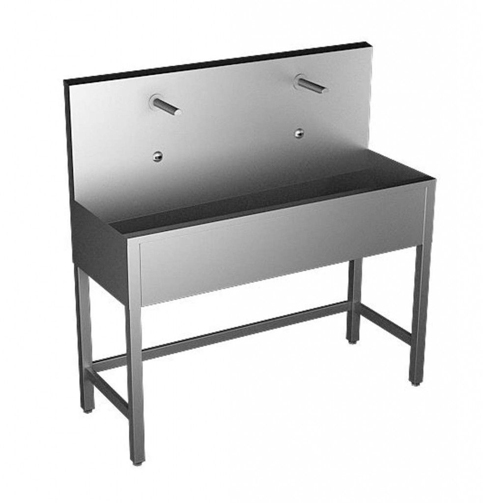 Nerezový stojící mycí žlab s automatickým systémem pro ovládání vody úsporný perlátor, průtok 6 l/min hygienický proplach použití ve zdravotnictví s integrovanou elektronikou antivandalová nerezová výtoková ramínka a snímací hlavice (2 ks elektroniky) reaguje na přítomnost rukou ve snímané zóně okamžitým spuštěním vody k vypnutí vody dojde po vyjmutí rukou po uplynutí nastavené doby (možno nastavit v rozsahu 0,25 - 7,75 s) bezpečnostní funkce vypnutí vody po 5 minutách možnost přepnutí do režimu START/STOP nastavení parametrů pomocí dálkového ovladače SLD 03 nastavení teploty ručně rohovými ventily materiál AISI 304 povrch matný Technická specifikace rozměry: 1250 x 480 x 1270 mm (DxŠxV) napájecí napětí: 24 V DC příkon: 14 W dosah: 0,23 - 0,31 m doporučený pracovní tlak: 0,1 - 0,6 MPa vstup vody vnější závit G 1/2 Rozsah dodávky nerezový mycí žlab s elektronikou a výtokovými ramínky elektromagnetický ventil (dle počtu elektronik) propojovací hadice, rohový ventil s filtrem a zpětnou klapkou 2 ks, sifon napájecí zdroj a dálkové ovládání SLD 03 není součástí balení