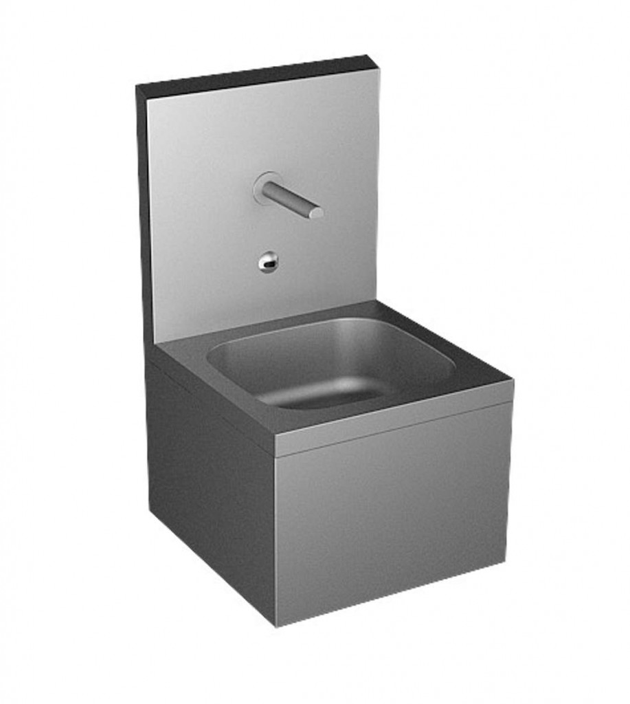 Nerezový automatický dřez se zadní stěnou SLUN 04ET, s opláštěním úsporný perlátor, průtok 6l/min hygienický proplach antivandalové provedení s integrovanou elektronikou antivandalové nerezové výtokové ramínko a snímací hlavice reaguje na přítomnost rukou ve snímané zóně okamžitým spuštěním vody k vypnutí vody dojde po vyjmutí rukou po uplynutí nastavené doby (možno nastavit v rozsahu 0,25 - 7,75 s) bezpečnostní funkce vypnutí vody po 5 minutách možnost přepnutí do řežimu START/STOP nastavení parametrů pomocí dálkového ovladače SLD 03 nastavení teploty ručně termostatem materiál: nerezová ocel AISI 304 Technická specifikace napájecí napětí: 24 V DC příkon: 7 W dosah: až 0,3 m doporučený pracovní tlak: 0,1-0,6 MPa vstup vody: vnitřní závit G 1/2 Rozsah dodávky nerezový dřez s elektronikou a výtokovým ramínkem termostatický ventil, elektromagnetický ventil rohový ventil s filtrem a zpětnou klapkou 2 ks propojovací hadice, sifon, úchytová sada napájecí zdroj není součástí dodávky