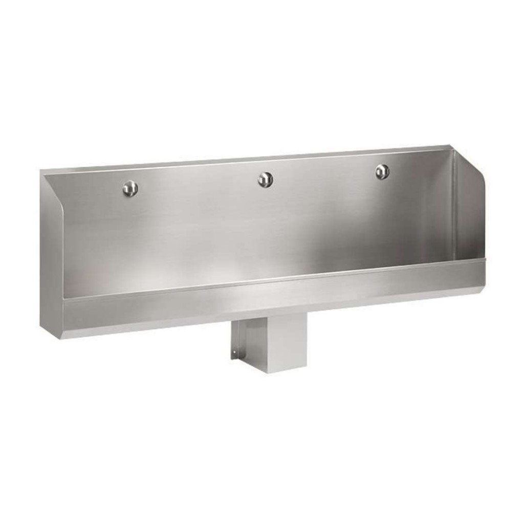 nerezový pisoárový žlab 1800 mm - 3 nerezové výtokové hlavice, čidlo s elektronikou, elektromagnetický ventil (1 ks), rohový ventil, úchytová sada, kryt na sifon, sifon, 4 ks 1,5V alkalické napájecí baterieantivandalové provedenínerezové pisoárové žlaby se skrytým automatickým splachováním a splachovací hlavicípro zavěšení na zeďžlaby jsou dodávány v délkách 600, 1200, 1800 a 2400 mmdélkám odpovídá počet vestavěných hlavic umístěných v horní části žlabuke spláchnutí dojde po použití žlabudoba splachování je nastavitelná od 0,5 do 15,5 ssamočinné spláchnutí po 24 hodinách od posledního sepnutí ventilužlaby je možné na zakázku vyrobit v požadované délcemateriál CrNi 18/10 (AISI-304)povrch matnýNapájecí napětí: 6VPříkon: 3 WŽivotnost baterií: alkalická AA baterie 4x 1,5V, 2700 mAh (cca 2 roky při 100 sepnutích denně)Doporučený pracovní tlak: 0,1 - 0,6 MPaPrůtok: 6 l/min. (inf. údaj)Vstup vody: vnitřní závit G 1/2“