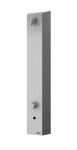 Nástěnný sprchový panel s elektronikou ALS hygienický proplach antivandalové provedení se zabudovaným automatickým ovládáním vody sprchová hlavice s nastavením úhlu výtoku je určen pro přívod teplé a studené vody, nastavení teploty termostatickou kartuší s pojistkou proti opaření reaguje na přítomnost osoby ve snímané zóně okamžitým spuštěním vody k vypnutí vody dojde po vystoupení osoby ze snímané zóny (možno nastavit v rozsahu 0,25 – 7,75 s), standardně 3 s bezpečnostní funkce vypnutí vody po 5 minutách indikátor stavu baterie možnost přepnutí do režimu START/STOP nastavení parametrů pomocí dálkového ovladače SLD 03 materiál: AISI 304 povrch matný Technická specifikace napájecí napětí: 6 V příkon při napájení 6 V: 3 W dosah standardně: 0,27 - 0,35 m doporučený pracovní tlak 0,1-0,6 MPa průtok: 12 l/min vstup vody: vnější závit G 1/2 Obsah dodávky sprchový panel s elektronikou, elektromagnetický ventil 1 ks termostatická kartuše propojovací hadice, rohový ventil s filtrem a zpětnou klapkou 2 ks 4 ks AA alkalických baterií, 1,5 V, 2700 mAh (životnost 2 roky při 100 sepnutích denně) dálkové ovládání není součástí balení