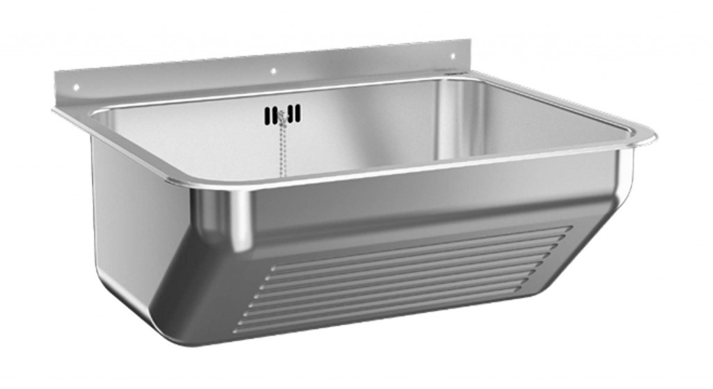 Závěsná nerezová výlevka s valchou barva matný nerez rozměry 552 x 453 x 223 mm s nosným držákem odpad se zátkou a přepadem součástí balení je přepadová sada, sifon a úchytová sada