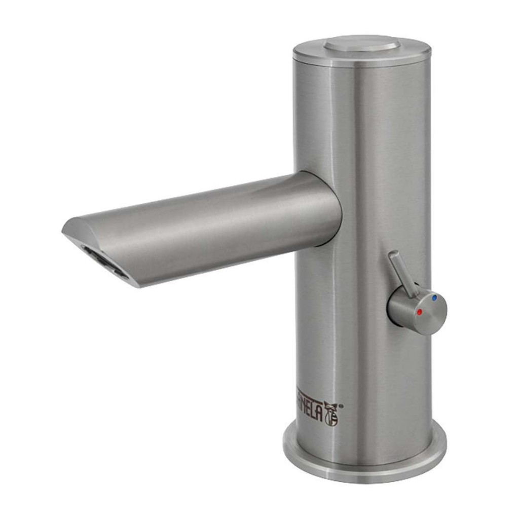Nerezová umyvadlová baterie Piezo úsporný perlátor, průtok 6 l/min hygienický proplach antivandalové provedení bezolovnatá technologie celonerezové provedení pro přívod teplé a studené vody, nastavení teploty páčkou reaguje na mírné stlačení piezo tlačítka okamžitým spuštěním vody k vypnutí vody dojde po uplynutí nastavené doby, v rozsahu 2-62 s (standardně 10 s) síťové napájení opakovaným stlačením piezo tlačítka dojde k vypnutí vody nastavení parametrů pomocí dálkového ovladače SLD 04 Technické údaje délka výtoku: 105 mm comfort zone 98 mm výška: 157 mm napájecí napětí: 24 V DC příkon: 3 W doporučený pracovní tlak 0,1-0,6 MPa vstup vody vnější závit G 1/2 Obsah dodávky výtokové ramínko s regulací teploty a piezo elektronikou a elektromagnetickým ventilem propojovací hadice, rohový ventil s filtrem a zpětnou klapkou (2 ks) napájecí zdroj a dálkové ovládání SLD 04 není součástí balení