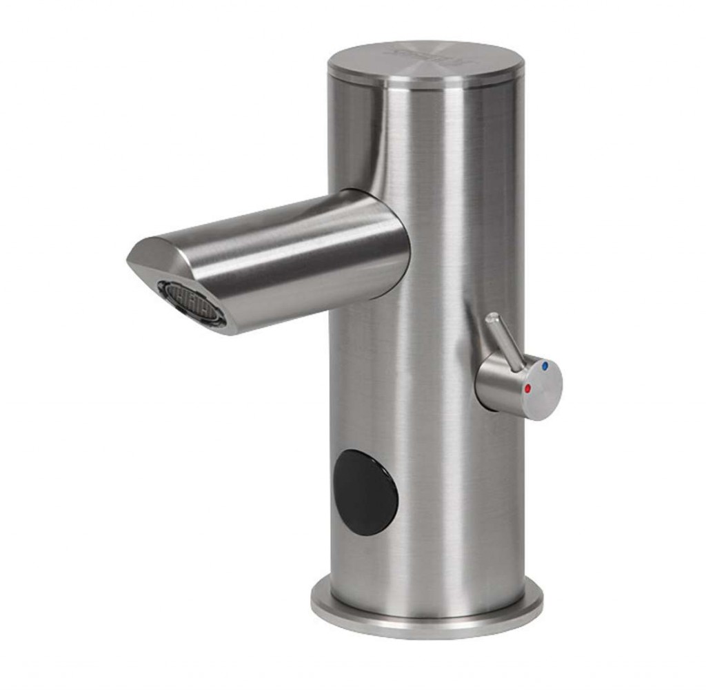 Automatická umyvadlová směšovací baterie úsporný perlátor, průtok 6 l/min hygienický proplach bezolovnatá technologie celonerezové provedení pro přívod teplé a studené vody, nastavení teploty páčkou elektromagnetický ventil je integrován v těle baterie reaguje na přítomnost rukou ve snímané zóně okamžitým spuštěním vody k vypnutí vody dojde po vyjmutí rukou po uplynutí nastavené doby, v rozsahu 0,25-7,75 s bezpečnostní funkce vypnutí vody po 5 minutách síťové napájení možnost přepnutí do režimu START/STOP nastavení parametrů pomocí dálkového ovladače SLD 03 Technické údaje výška: 141 mm délka výtoku: 80 mm comfort zone 98 mm napájecí napětí: 24 V DC příkon: 3 W dosah standardně: 0,13-0,19 m dosah v režimu START/STOP: 0,05-0,15 m doporučený pracovní tlak: 0,1-0,6 MPa vstup vody vnější závit G 1/2 Obsah dodávky výtokové ramínko s regulací teploty a elektronikou a elektromagnetickým ventilem propojovací hadice, rohový ventil s filtrem a zpětnou klapkou (2 ks) napájecí zdroj, dálkové ovládání SLD 03 není součástí balení