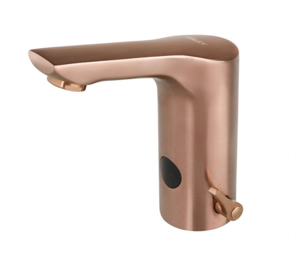 Stojánková plně elektronická umyvadlová baterie barva rose gold matt výška baterie 152 mm délka výtoku 97 mm komfortní zóna 128 mm elektromagnetický ventil je integrován v těle baterie nastavení teploty páčkou možnost jednorázového nastavení teploty a následné zaslepení víčkem bezdotykové ovládání povrchová úprava PVD s úsporným naklápěcím perlátorem bateriové napájení hygienický proplach vnější závit G 1/2" bez odtokové soupravy možnost přepnutí do režimu Start/Stop možnost ovládání přes Bluetooth aplikaci nebo dálkový ovladač bezpečnostní funkce vypnutí vody po 5 minutách Technické údaje doporučený tlak 1 - 6 bar nastavitelné vypnutí vody po uplynutí 0,25 - 7,75 s napájecí napětí 6 V příkon 2 W dosah standardně 0,13 - 0,19 m dosah v režimu Start/Stop 0,05 - 0,15 m průtok 6 l/min životnost baterií cca 2 roky (při 100 sepnutích denně) Obsah balení umyvadlová baterie s Bluetooth modulem 1x elektromagnetický ventil sestava Y-dílu a hadic s integrovanou zpětnou klapkou propojovací hadice 2x rohový ventil s filtrem a zpětnou klapkou záslepka regulace teploty 4x AA alkalické baterie 1,5 V, 2700 mAh s pouzdrem