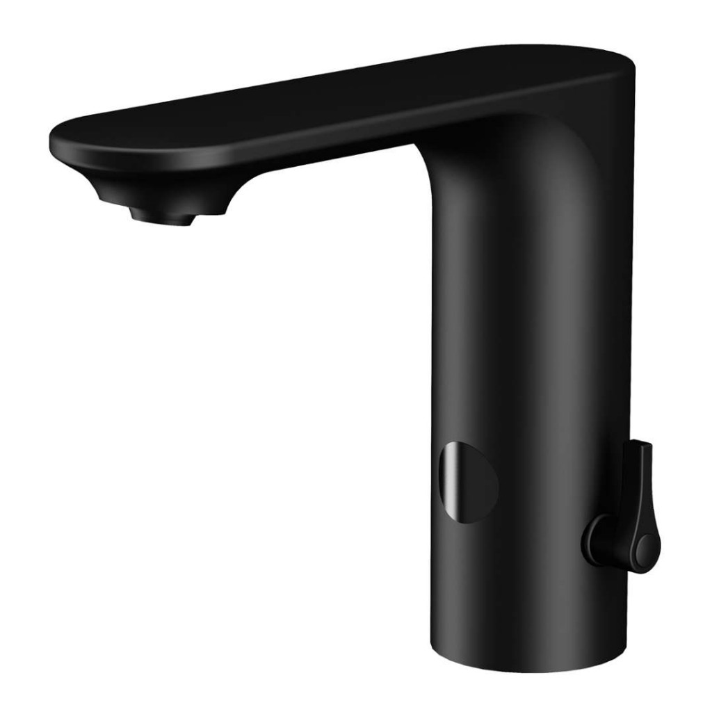Stojánková automatická umyvadlová baterie pro nápajení z baterie 6 V Vlastnosti úsporný perlátor, průtok 6 l/min hygienický proplach možnost jednorázového nastavení regulace teploty vody a následné zaslepení víčkem elektromagnetický ventil je integrován v těle baterie je určena pro přívod teplé a studené vody, nastavení teploty páčkou reaguje na přítomnost rukou ve snímané zóně okamžitým spuštěním vody k vypnutí vody dojde po vyjmutí rukou po uplynutí nastavené doby (možno nastavit v rozsahu 0,25 – 7,75 s) bezpečnostní funkce vypnutí vody po 5 minutách možnost přepnutí do režimu START/STOP nastavení parametrů pomocí dálkového ovladače Technická specifikace délka raménka: 186 mm komfortní zóna: 136 mm výška baterie: 161 mm napájecí napětí: 6 V příkon při napájení: 2 W dosah standardně: 0,13 - 0,19 m dosah v režimu START/STOP: 0,05 - 0,15 m doporučený pracovní tlak 0,1 - 0,6 MPa vstup vody: vnější závit G 1/2“ Součástí dodávky výtokové raménko s regulací teploty, elektronikou a elektromagnetickým ventilem propojovací hadice 2x rohový ventil s filtrem a zpětnou klapkou záslepka regulace teploty 4x AA alkalická baterie 1,5 V, 2700 mAh s pouzdrem