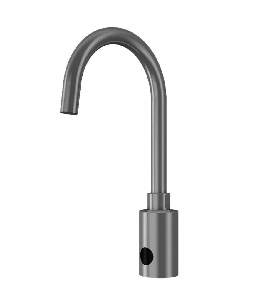 Automatická stojánková umyvadlová baterie s elektronikou ALS pro teplou a studenou vodu úsporný perlátor, průtok 6 l/min hygienický proplach použití ve zdravotnictví vyšší otočné výtokové ramínko určena pro přívod teplé a studené vody, nastavení teploty ručně rohovými ventily reaguje na přítomnost rukou ve snímané zóně okamžitým spuštěním vody k vypnutí vody dojde po vyjmutí rukou po uplynutí nastavené doby (možno nastavit v rozsahu 0,25 – 7,75 s) bezpečnostní funkce vypnutí vody po 5 minutách hlídání stavu baterie možnost přepnutí do režimu START/STOP nastavení parametrů pomocí dálkového ovladače SLD 03 Technická specifikace délka raménka: 210 mm komfortní zóna: 230 mm výška baterie: 266 mm napájecí napětí: 6 V příkon při napájení: 3 W dosah standardně: 02 - 0,26 m dosah v režimu START/STOP: 0,05 - 0,15 m doporučený pracovní tlak: 0,1 - 0,6 MPa vstup vody: vnější závit G 1/2” Součástí dodávky výtokové raménko s elektronikou elektromagnetický ventil propojovací hadice Y - díl 2x rohový ventil s filtrem a zpětnou klapkou 4 x AA alkalická baterie 1,5 V, 2700 mAh s pouzdrem