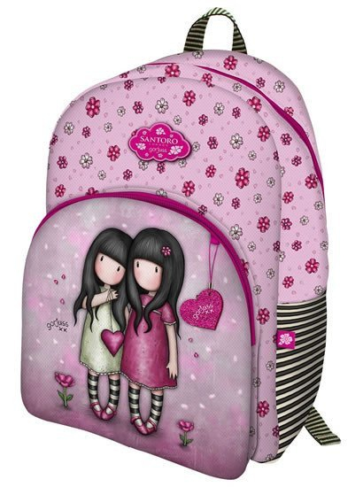 Tento batoh má jednu hlavní komoru bez přepážek, která se uzavírá na dvoucestný zip. Přední našitá kapsa má také pouze jeden nečleněný prostor a uzavírá se na klasický zip. Všechny jezdce mají na sobě malou ozdobu SANTORO. Záda jsou polstrovaná stejně jako popruhy, které jsou zároveň nastavitelné. K přenášení v ruce je zde našité poutko. Výhodou batohu je jeho univerzální použití.Rozměry: 43 x 35 x 14 cm.