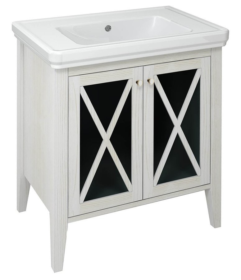 Dvoukřídlá prosklená dvířka, matné sklo Standardně dodáváno s úchytkou 12937Pokud zvolíte klasický design s umírněnými tvary a přitom s výraznou linkou návrháře a doplníte ho přírodními materiály, dostanete řadu nádherného nábytku CROSS. Masivní bukové nebo smrkové dřevo mu dodává punc decentního luxusu. Prosklení čelních ploch tak pouze dotváří celkovou pohodu a vlídnost, která z tohoto nábytku opravdu sálá. Nespornou výhodou je nabídka produktů sanitární keramiky ve shodném tvaru, se kterými doladíte vzhled celé koupelny. Například řada Classic nabízí umyvadla, WC kombi, závěsné WC i bidet. Umyvadlové skříňky CROSS jsou k dispozici v několika šířkách a lze je doplnit celou řadou bočních skříněk a zrcadel v obdobném designu. Nábytek je dodáván ve smontovaném stavu, připraven k okamžité instalaci.Nevystavujte nábytek trvalé vlhkosti a styku s vodou. Koupelnu vždy řádně odvětrejte. Skříňky v tmavém odstínu jsou napuštěny 2 vrstvami oleje: barevným pro sjednocení barvy dřeva a bezbarvým pro větší odolnost. U varianty ve starobílé jsou skříňky nabarveny bílou barvou, následně probroušeny pro docílení retro vzhledu a nakonec přelakovány bezbarvým lakem pro větší odolnost. U nábytku z masivu jsou použity čepové spoje. Jedná se o jedno z nejodolnějších spojení proti tlaku. Pokud je zesíleno klíny, vzdoruje rovněž dobře i napětí. Používá se ke spojování svislých a vodorovných částí - například nohy nábytku s příčkou.