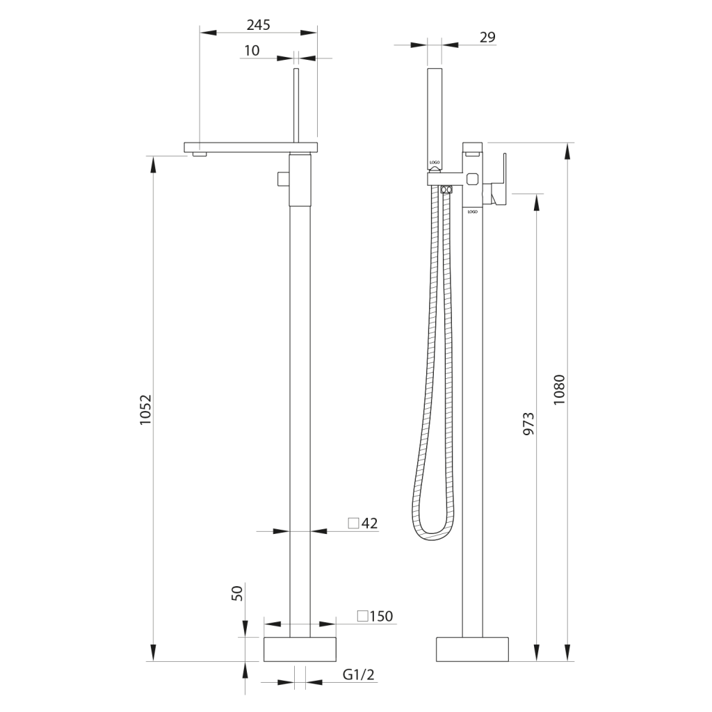 SAPHO - CUBEMIX vanová baterie s připojením do podlahy, černá mat CM021B