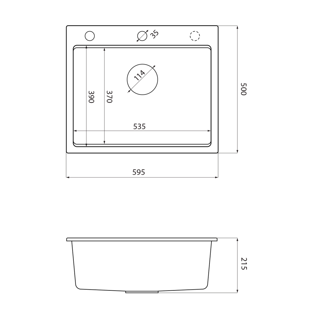 Granit Speciální složení materiálu použitého pro výrobu (kamenná drť, např. křemičitého písku - žuly a polymerové pryskyřice) a jeho vysoká hustota garantuje bezpečné používání výrobku, a proto jsou granitové dřezy tak oblíbené. Na granitovém dřezu nejsou vidět zaschlé kapky, je odolný vůči skvrnám a neztrácí barvu. Povrch je odolný proti poškrábání a odolává teplotám až do 180 °C. Při jejich údržbě se používají obvyklé čistící prostředky nebo prostředky na nádobí s jemným abrasivem. Výhodou je rozmanitá barevná nabídka. Instalace: Horní montáž Dřez je usazen na pracovní desku a hranou ji převyšuje. Včetně sítkové výpusti se sifonem, odpad DN40.