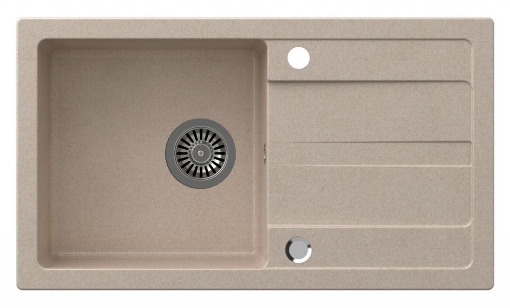 MEXEN - Elix granitový dřez 1-miska 700 x 500 mm, béžový, sifon chrom 6526701005-69