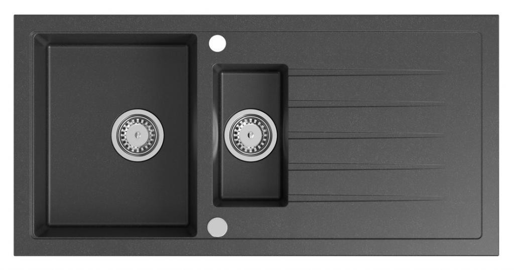 MEXEN/S - Cesar granitový dřez 1-miska s odkapávačem včetně baterie Carla, černá kropenatá 6514-76-670700-70-B