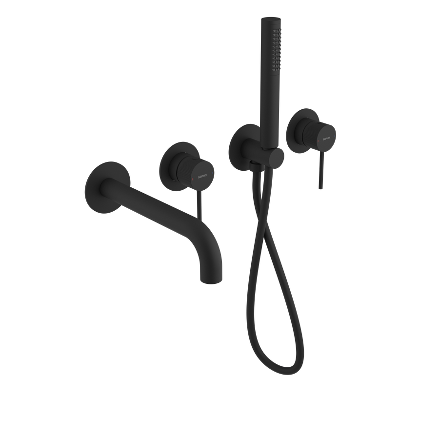 SAPHO - ULTRASAN podomítková vanová baterie s hubicí a ruční sprchou, 2 výstupy, černá mat UT093VB