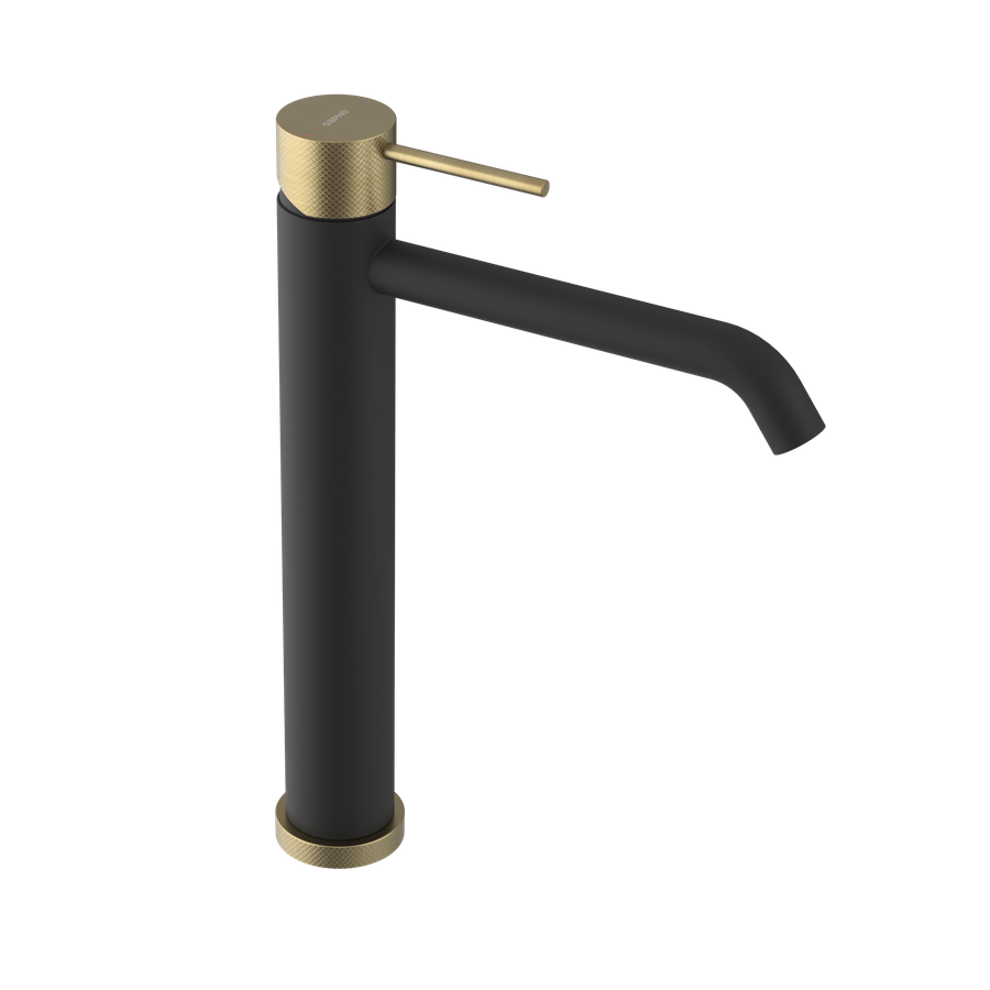 SAPHO - ULTRASAN stojánková umyvadlová baterie vysoká, prodloužená hubice, černá mat/zlato mat UT007VBG