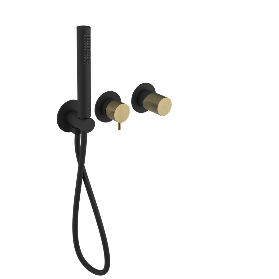 SAPHO - ULTRATAP podomítková sprchová/vanová baterie s ruční sprchou, 2 výstupy, černá mat/zlato mat UT045TBG
