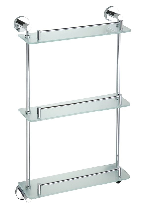 Domů Nábytek Koupelna Koupelnové doplňky SAPHO - X-ROUND E skleněná polička trojitá s hrazdou 380x675x130, chrom XR608