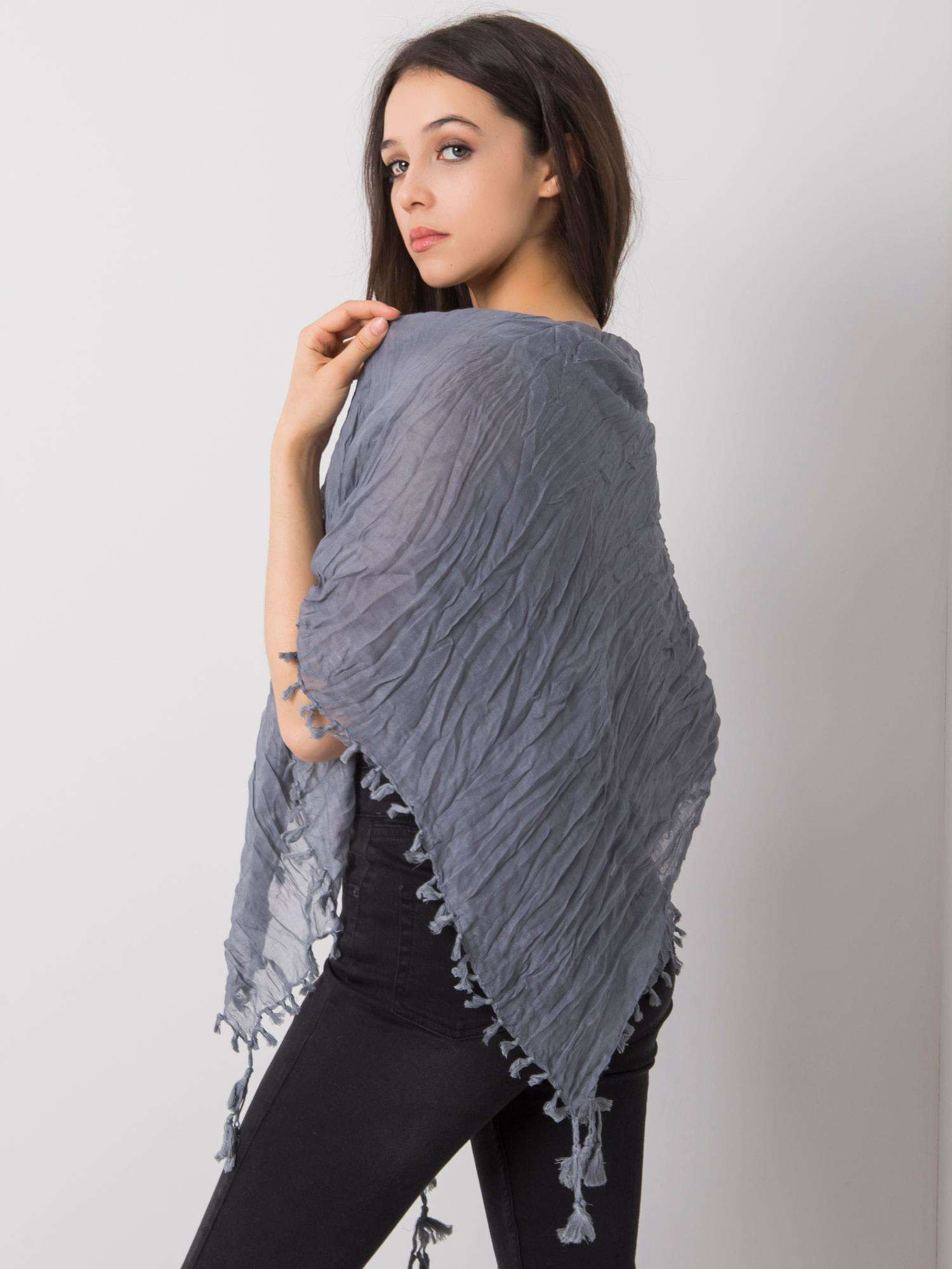 Šedá dámská šála se střapci. složení látky: 100% viskóza způsob praní: praní v pračce na 30 °C Rozměry: přibližně. 110 x 110 cm
