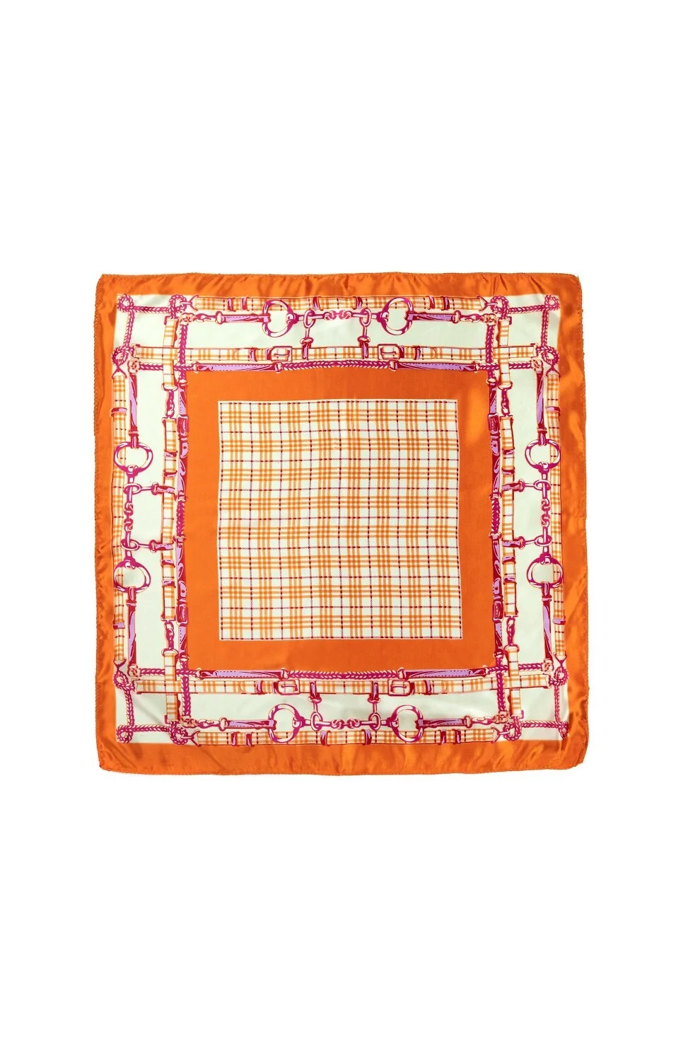 Dámská šála - eklektická směs vzorů a barev - má saténovou vazbu, která jí dodává jemný lesk - nošený na zápěstí nebo s kabelkou dodá charakter každému oblečení - velikost 50x50 cm Složení: 100% polyester