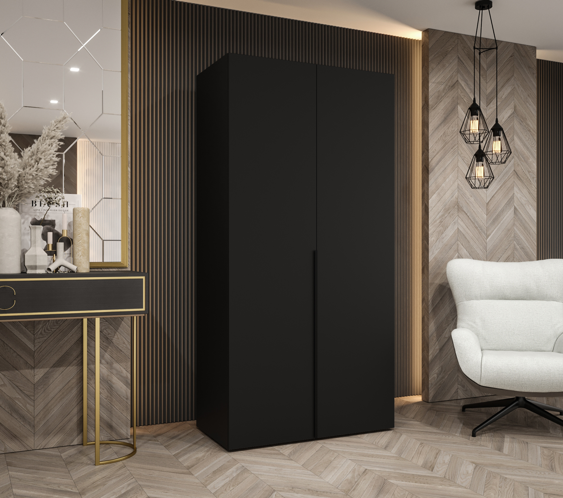Šatní skříň Abi Alicante 1 Rozměry: 100 cm, Pásky / úchyty: Černá, Barva korpusu + barva dveří: Černá + Černá