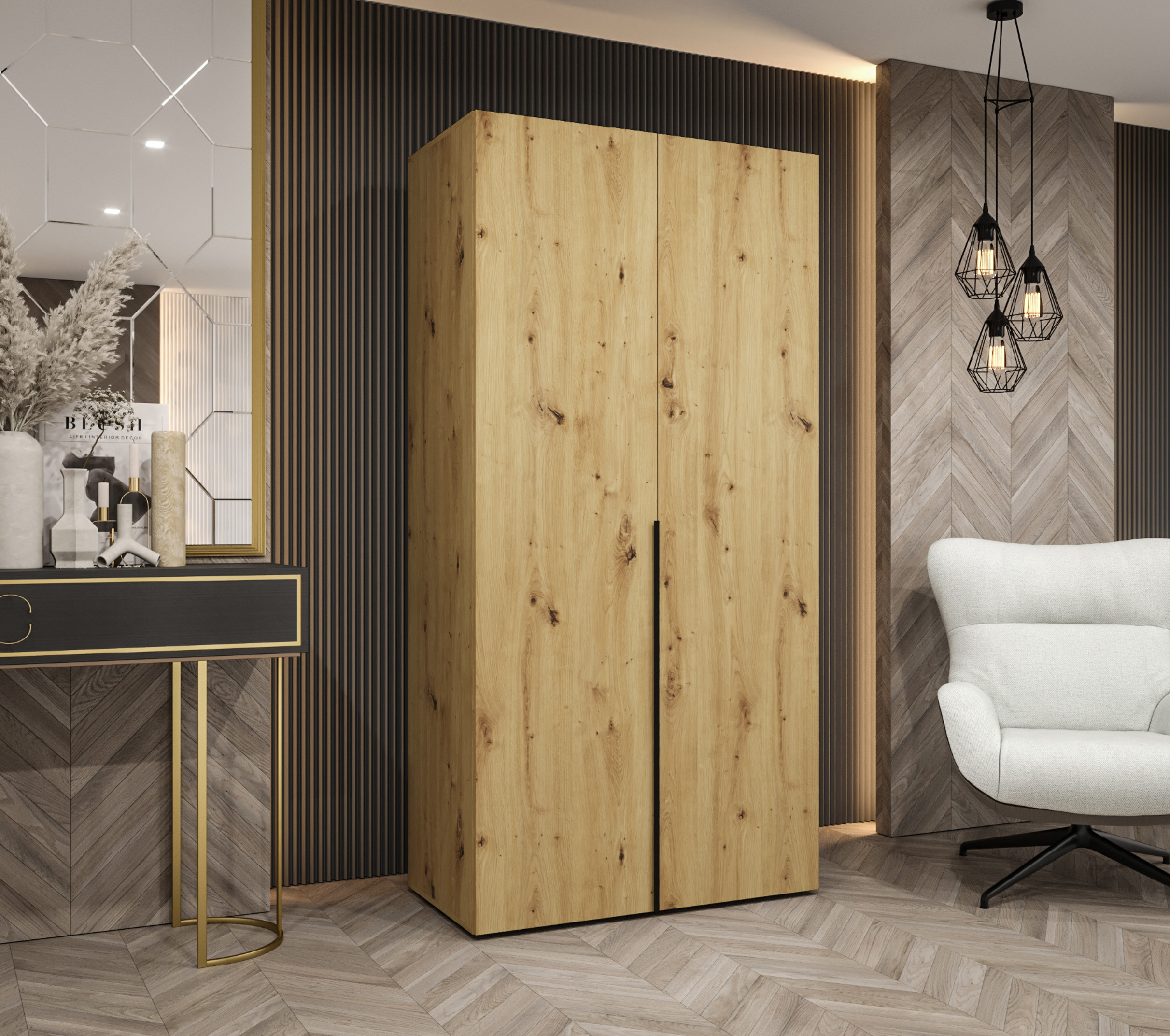 Šatní skříň Abi Alicante 1 Rozměry: 100 cm, Pásky / úchyty: Černá, Barva korpusu + barva dveří: Dub artisan + Dub artisan