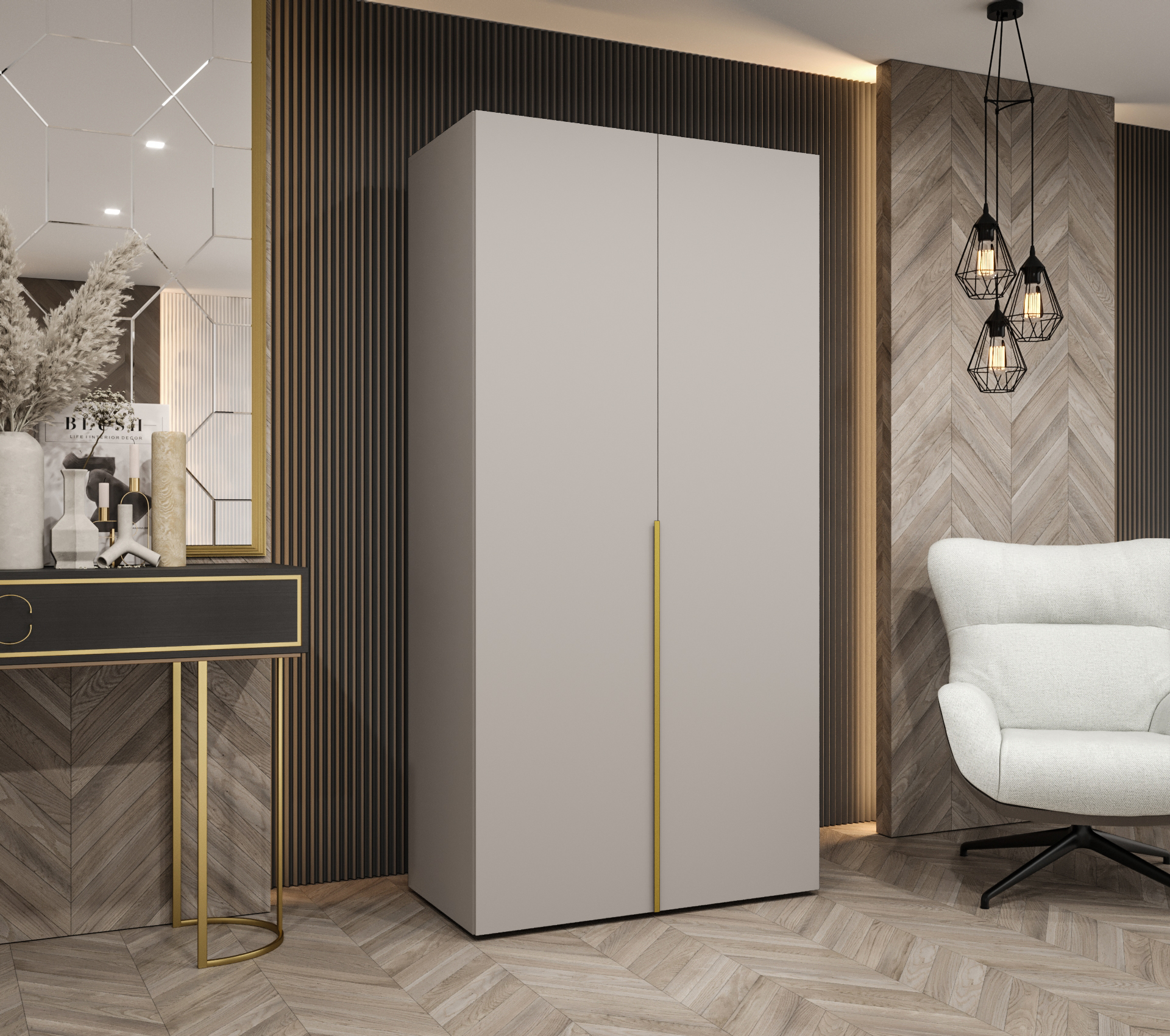 Šatní skříň Abi Alicante 1 Rozměry: 100 cm, Pásky / úchyty: Zlatý, Barva korpusu + barva dveří: Kašmír + Kašmír