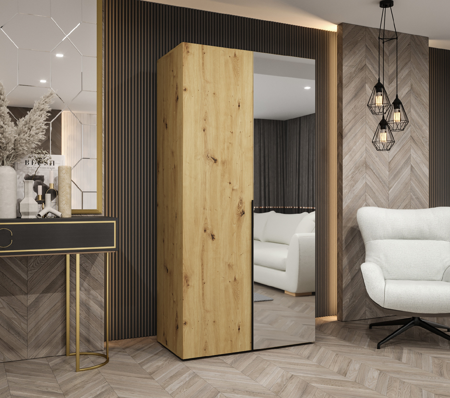 Domů Nábytek Ložnice Skříně a komody Šatní skříně Šatní skříň Abi Alicante 2 Rozměry: 100 cm, Pásky / úchyty: Černá, Barva korpusu + barva dveří: Dub artisan + Dub artisan