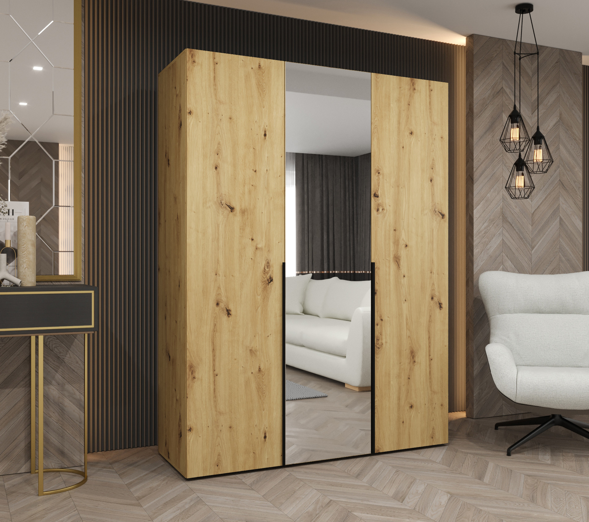 Šatní skříň Abi Alicante 2 Kolekce šatních skříní Alicante kombinuje eleganci a funkčnost. S postavením několika skříní vedle sebe lze získat unikátní sestavu. Dále Vám šatní skříň také nabídne tři varianty vnitřního uspořádání. • Vlastnosti šatní skříně Materiál Šatní skříň je vyrobena z laminované desky o síle 16 mm. Ohraničené hrany Hrany desek jsou opatřeny PVC dýhou o síle 0,5 mm. Zadní deska Na zadní stranu šatní skříně je použita HDF deska. Úchyty Dveře otevřete pomocí hliníkových úchytů. Zrcadlo Součástí dveří je jedno zrcadlo. Doplňky k šatní skříni K šatní skříni je možné dokoupit poličky. • Vnitřní uspořádáníV základní variantě šatní skříň obsahuje šatní tyč a horní polici - počet podle zvoleného rozměru.K šatní skříni je možné si dokoupit navíc poličky.Do šířky 100 cm lze vložit 1 sadu, která obsahuje 2 police.Do šířky 150 cm lze vložit 1 sadu, která obsahuje 2 delší a 2 kratší police.Variantu uspořádání s policemi si zvolíte sami při montáži šatní skříně. Základní varianta - šířka 100 cm Varianta A - šířka 100 cm Varianta B - šířka 100 cm Základní varianta - šířka 150 cm Varianta A - šířka 150 cm Varianta B - šířka 150 cm • Barevné varianty:Šatní skříně Abi Alicante jsou dostupné ve čtyřech odstínech. Kromě barevného provedení korpusu a dveří si zvolíte také provedení úchytů.Korpus + dveřeÚchytyBíláČernáČernáStříbrnáDub artisanZlatáKašmírZlaté úchyty NELZE kombinovat s barevnou variantou dub artisan. • Rozměry 202 cm celková výška 100 / 150 cm celková šířka 50 cm celková hloubka 16 mm tloušťka desky • Sestava šatních skříní Abi Alicante 2 S postavením několika skříní vedle sebe lze získat unikátní sestavu, která může dosahovat délky až 300 cm. Sestava o šířce 200 cm (2x šířka 100 cm) Sestava o šířce 250 cm (1x šířka 100 cm a 1x šířka 150 cm) Sestava o šířce 300 cm (2x šířka 150 cm) • Další varianty šatní skříně Abi Alicante Šatní skříň Abi Alicante 1 Zobrazit... Šatní skříně Abi Alicante 2 Zobrazit... Šatní skříň Abi Alicante 3 Zobrazit... •