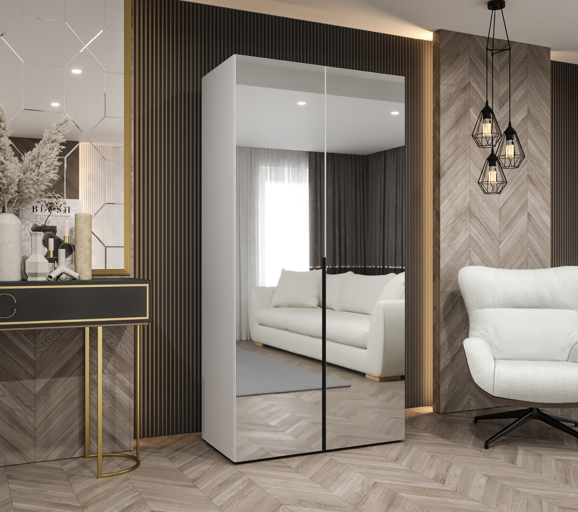 Šatní skříň Abi Alicante 3 Rozměry: 100 cm, Pásky / úchyty: Černá, Barva korpusu + barva dveří: Bílá + zrcadlo